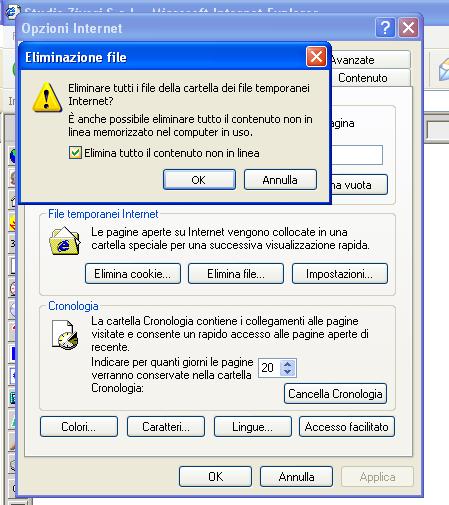 "Files temporanei Internet" premere il pulsante "Elimina", vistare la casella